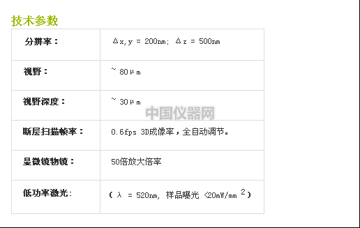 1. 分辨率:XY=200nm,Z=500nm