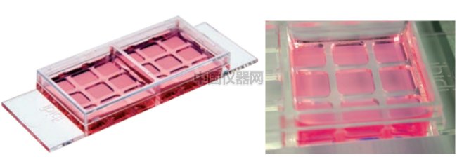 細胞共培養(yǎng)實驗是將2種或2種以上的細胞共同培養(yǎng)在同一環(huán)境中的實驗,更好的模擬體內細胞互相通信的生理情況。一般有兩種共培養(yǎng)方法:1)直接接觸共培養(yǎng)體系:是指直接將2種或2種以上的細胞按照一定比例混合,鋪在一個孔中;2)間接接觸共培養(yǎng)體系:是指將不同種類的細胞共用一種培養(yǎng)環(huán)境,而不互相接觸,查看細胞分泌因子對另外的細胞的影響。這里我們介紹的是采用間接接觸共培養(yǎng)的方法,研究CD34祖細胞的分泌物對由內皮細胞組成的細胞團在血管形成上的影響。 文中,研究人員將CD34祖細胞和內皮細胞團共培養(yǎng)后發(fā)現(xiàn),CD34祖細胞使內皮細胞團血管生成的出芽長度增長了18%,如果在此基礎上將氧濃度從20%降低到1%,血管生成的出芽長度增長了52%。說明CD34細胞和低氧情況都會促進內皮細胞血管生成的發(fā)生  圖一:ibidi共培養(yǎng)載玻片特點,可見載玻片上有2個大孔,可以做兩組平行實驗。其中每個大孔中有9個小孔。可以分別鋪不同的細胞,細胞互相分開而生長在同一個培養(yǎng)環(huán)境中。 一.實驗設計 1)將共培養(yǎng)載玻片上其中一個大孔中的9個小孔分為三列:左邊一列鋪入 7*104 的CD34祖細胞,中間和右邊兩列均按照每孔7個HUVEC細胞團與collagen gel相混鋪入每個孔中(圖二)。